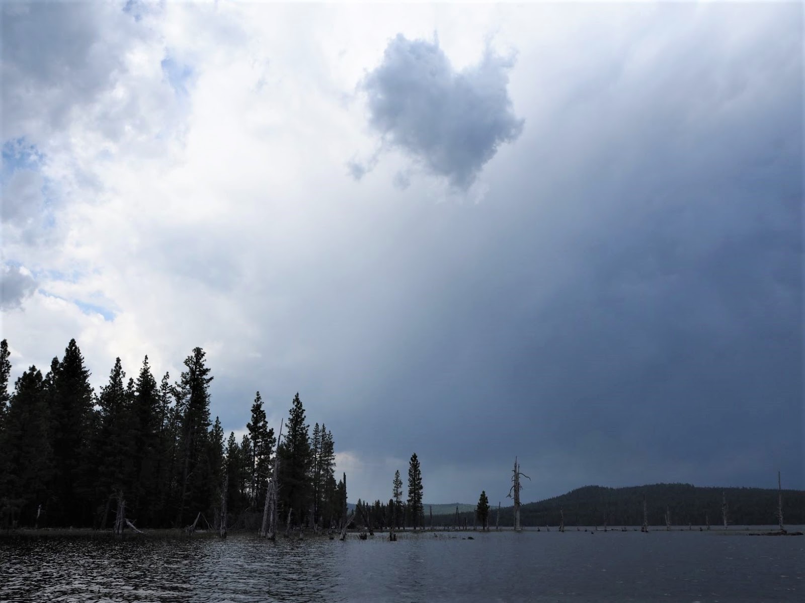 Today I soloed McCoy. When I started out, I was against the dark edge of a thunderstorm. But, as I rounded the island and headed back towards the Chev, it was almost glassy.