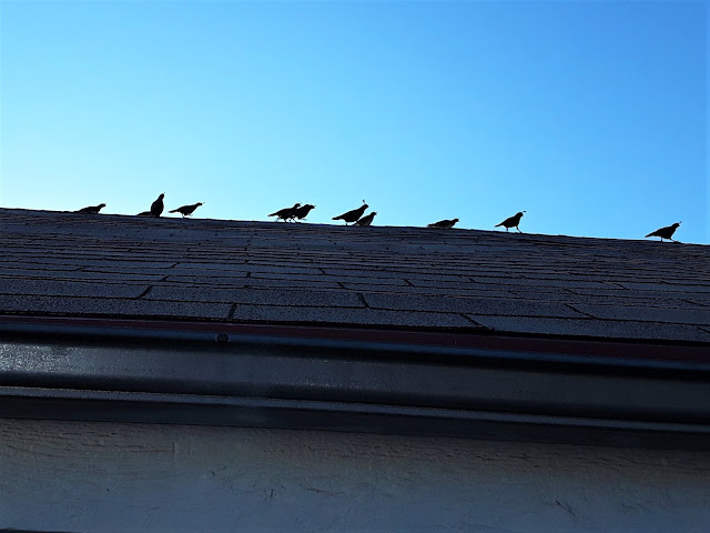 According to the Audubon book, the California quail (Callipepla californica) has adapted well to civilization, and can be found in suburbs and city parks. Or at 420 Grand. My own personal covey likes to eat the fruit in the orchard, and has adapted well to me being gone during part of the summer. When I return they fly up on the roof.