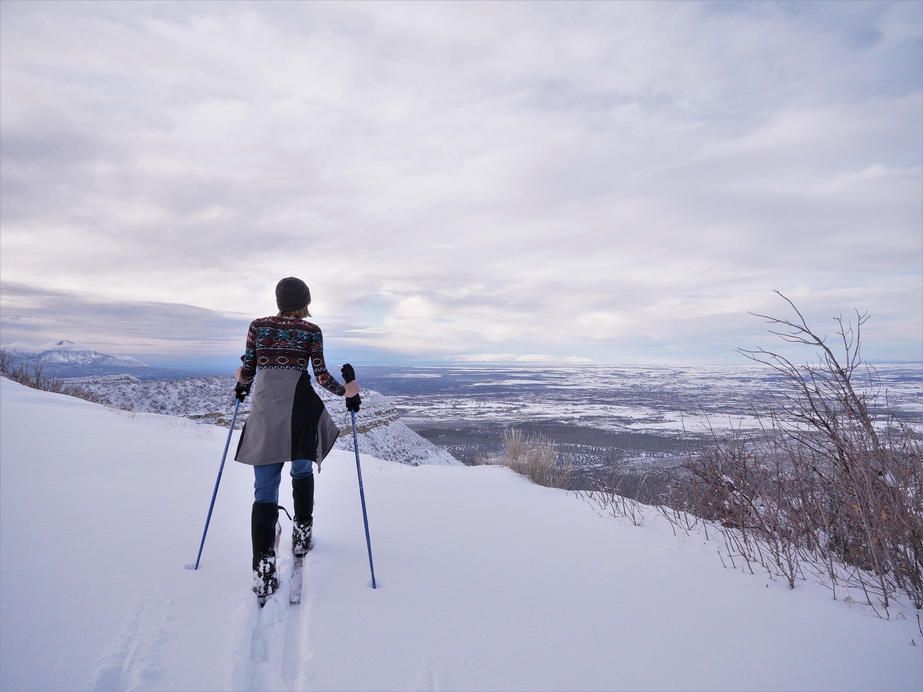 Yesterday we went to the park: Mesa Verde. We drove to Wetherill Mesa and EDO broke trail. The conditions were very good. From the mesa top we had views of the Sleeping Ute and the La Plata Mountains and everything in between (including the La Sals and Abajos back in Utah). One nice thing about skiing the park is that you don't encounter motors in the backcountry. Aside from some vehicles on the entrance road, everything was very quiet.