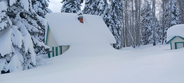 So far, we've had an unusual winter in central Utah. Storm after storm has dumped snow and rain on the mountains with barely a sunny day anywhere. Most of the watersheds in the state are approaching 200% of normal snowpack. Instead of light Utah powder, though, this snow has been more like Sierra cement. On the National Forest, some of our crews have been out clearing it from the roofs of the old guard stations: We don't want them to collapse under all the weight.
